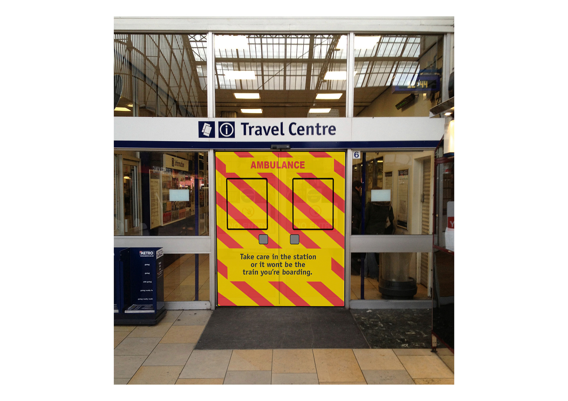 Injuries are a real problem in railway stations. People are usually in a rush or simply not paying attention. But ordinary posters and warning signs tend to go unnoticed. The brief here was simple – to grab people's attention by disruption.